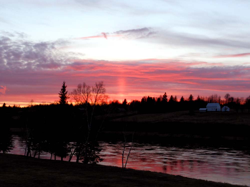 | This cosy cottage is ideal for a family or two couples. This single level cottage offers comfortable accommodation with 2 bedrooms, 4 beds and pull-out sofa, cosy living and dining area, modern washroom satellite TV, screened-in deck overlooking the famous Miramichi river, outside furniture & firepit. Your stay with us can include all-inclusive packages with daily maid service and 3 full home-cooked meals daily -or- if you prefer, "self-catering" packages where you prepare your own meals. While our guests you can enjoy one of our guided day adventure packages, or for those who would like to venture out on their own, in the summer we provide canoes, kayaks and shuttle service rentals and for winter enthusiasts, winter hikes, snowshoeing, cross country skiing, skating, sliding, sleigh rides or snowmobiling stop-over's.